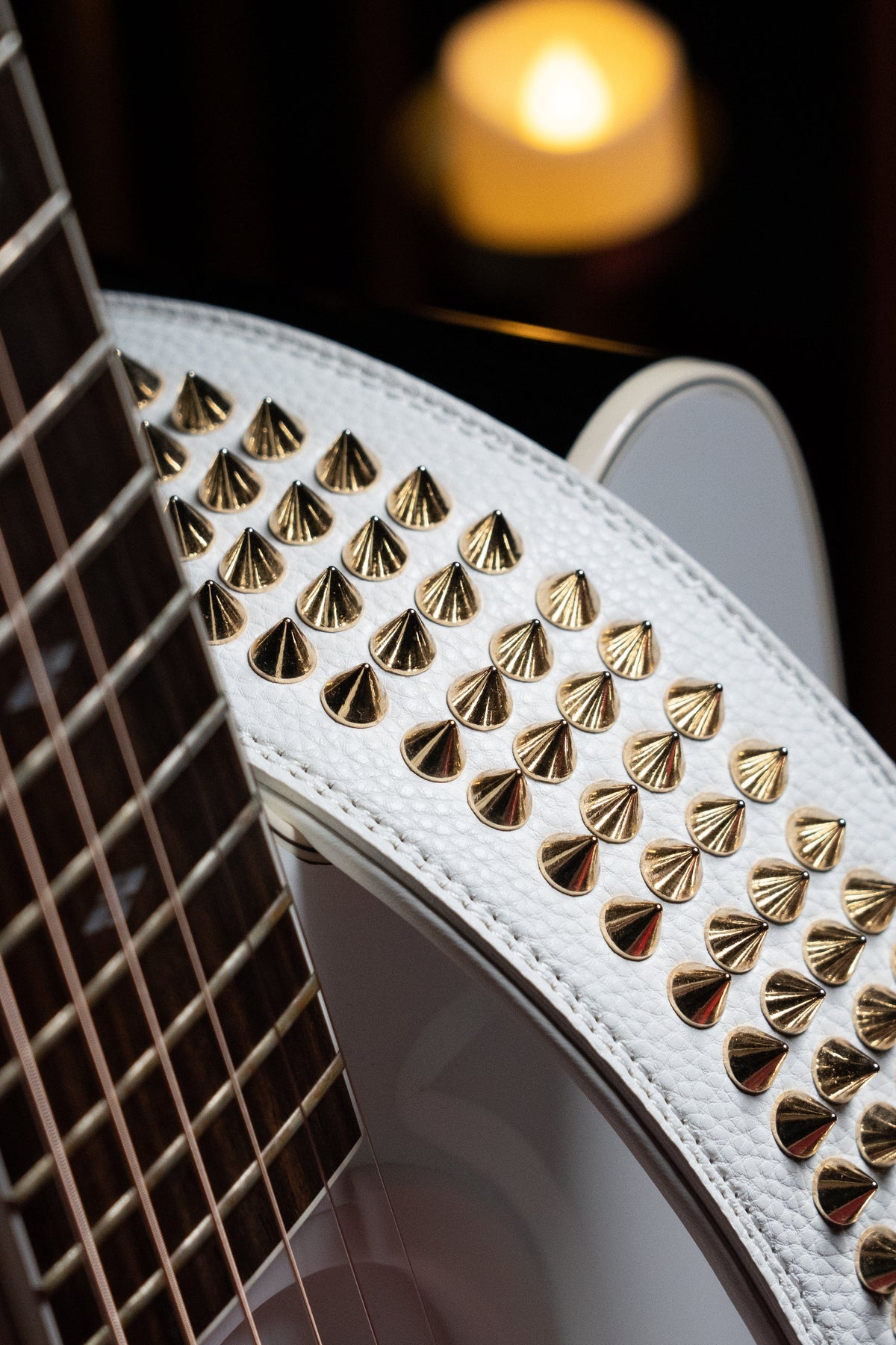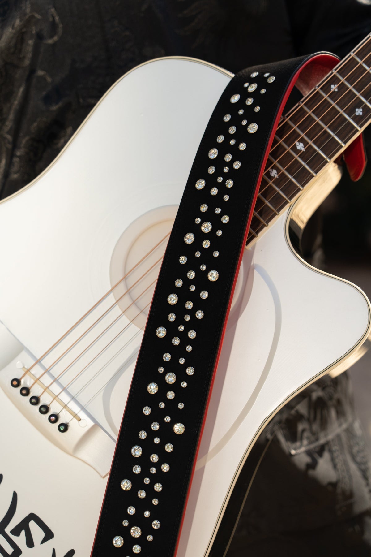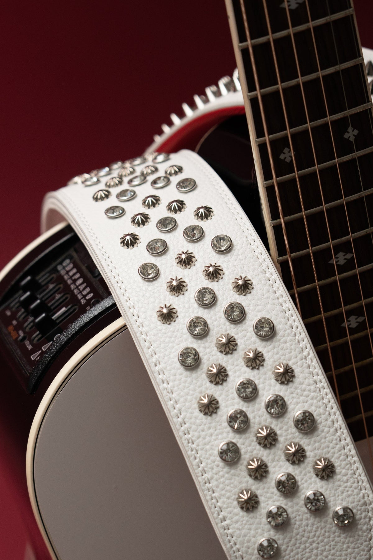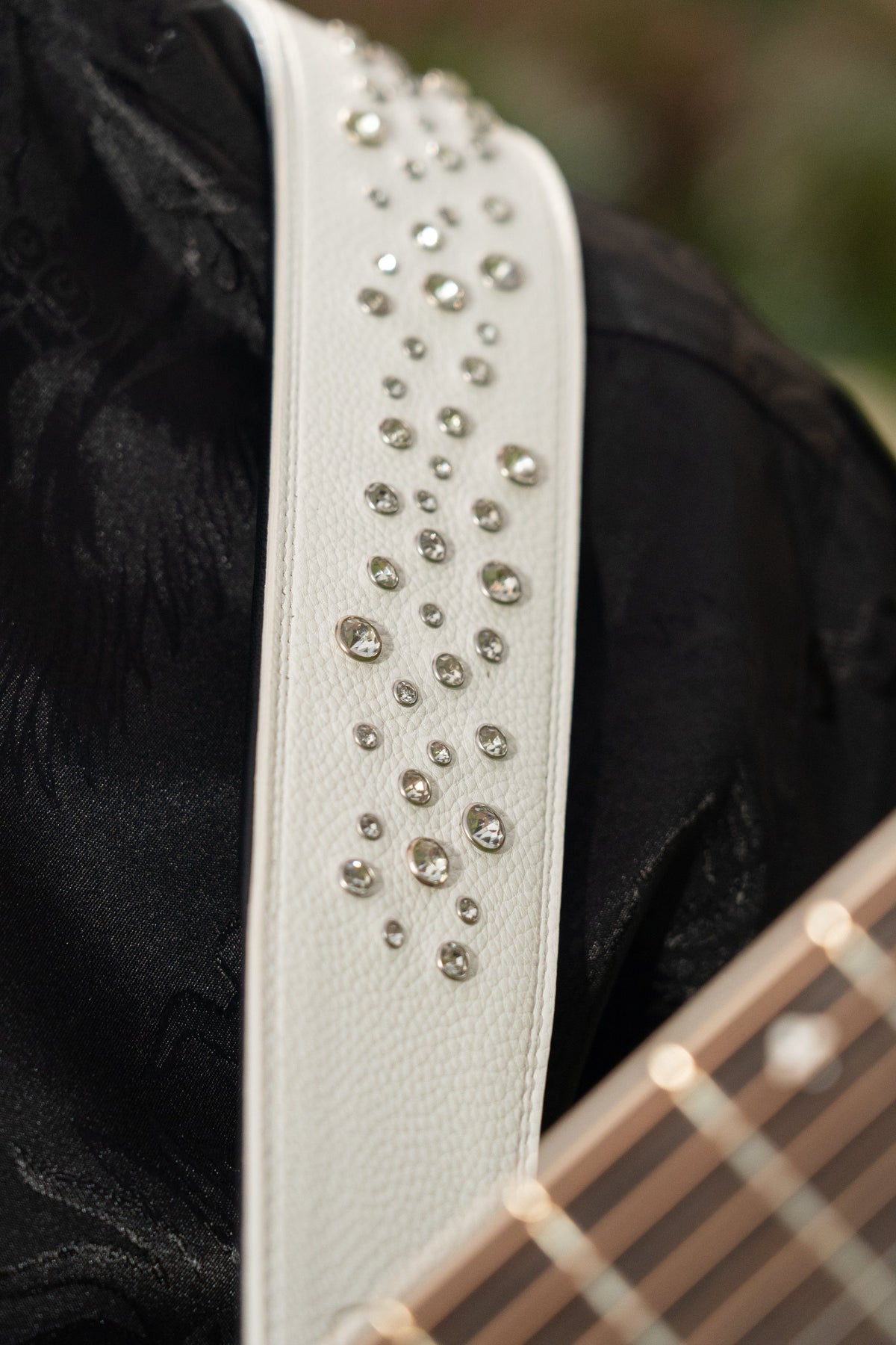 WHITE GOLD STUDDED GUITAR STRAP