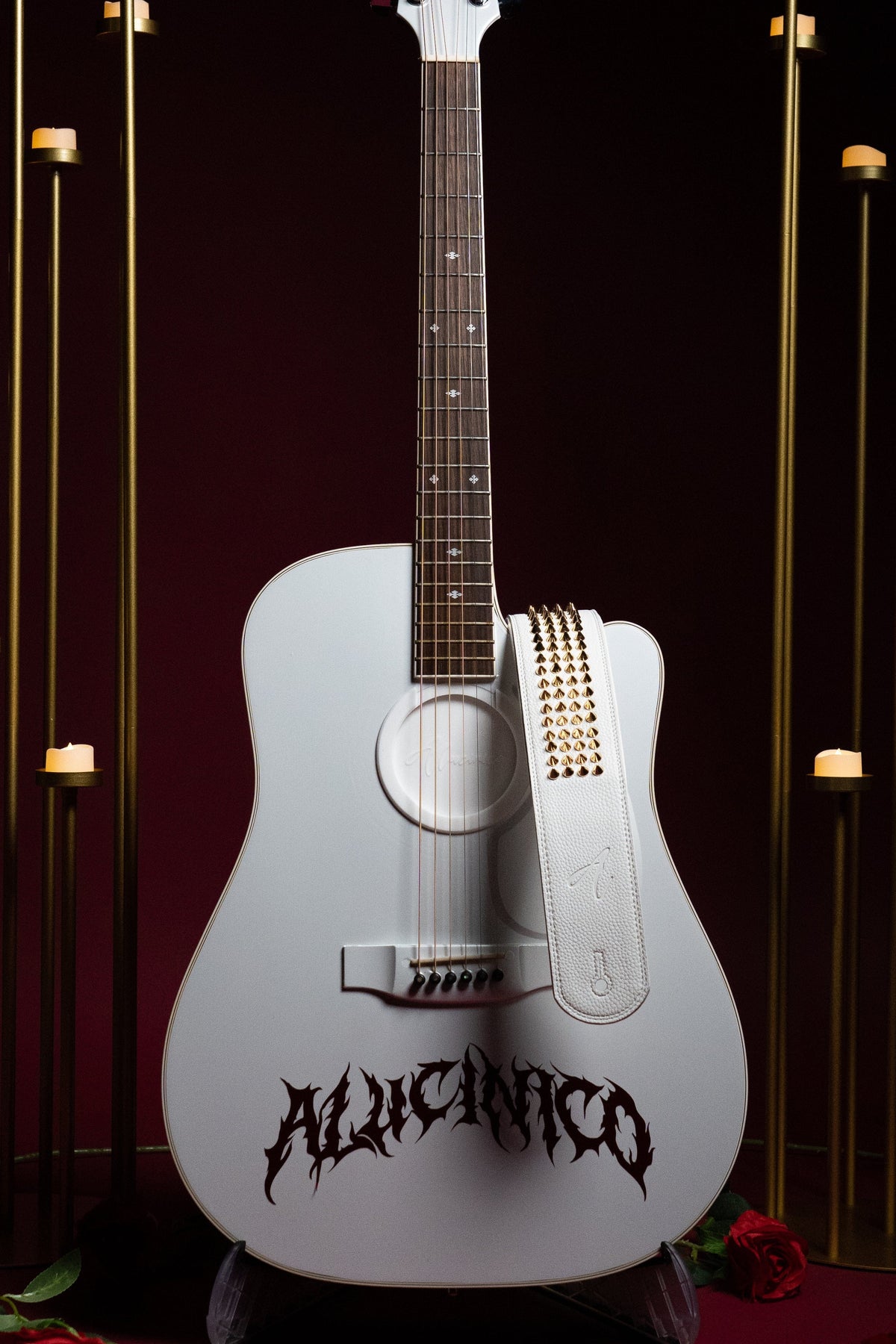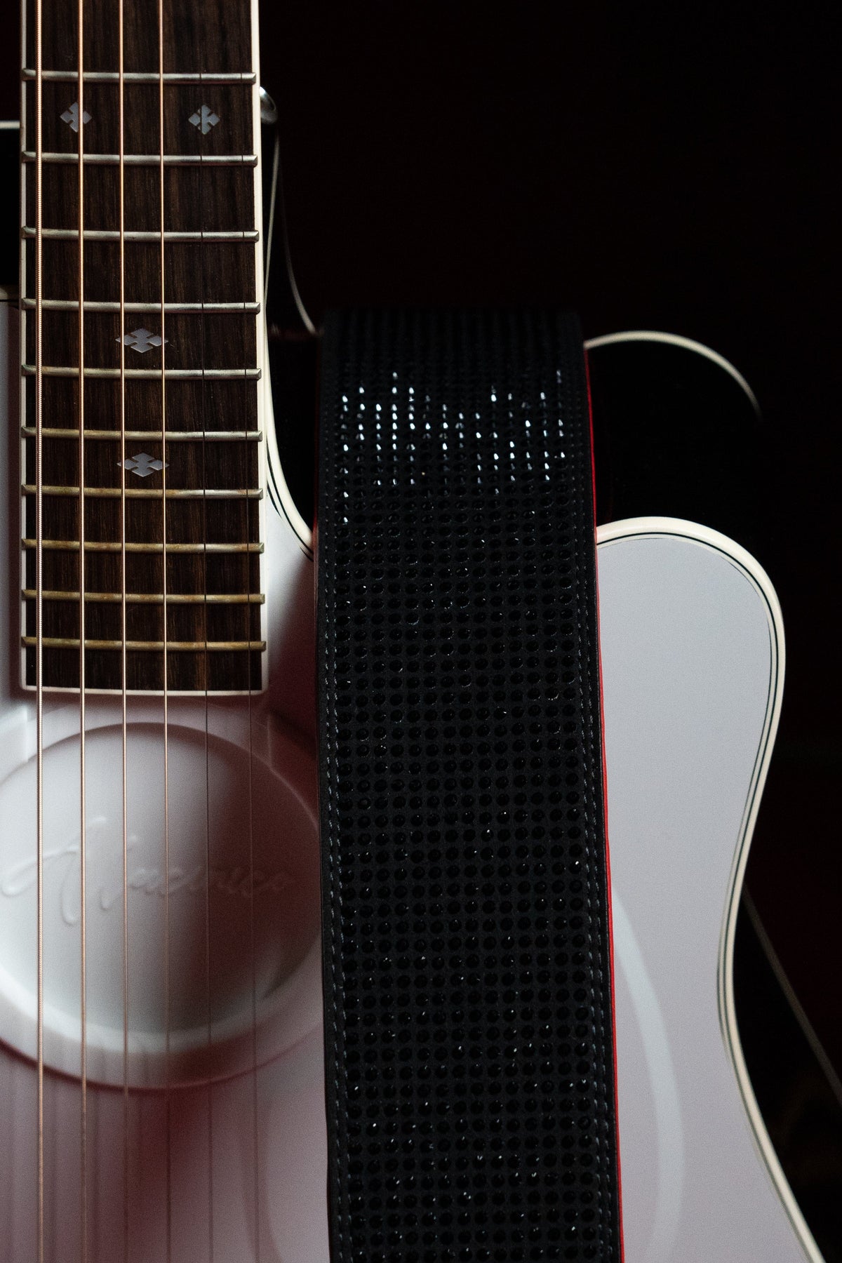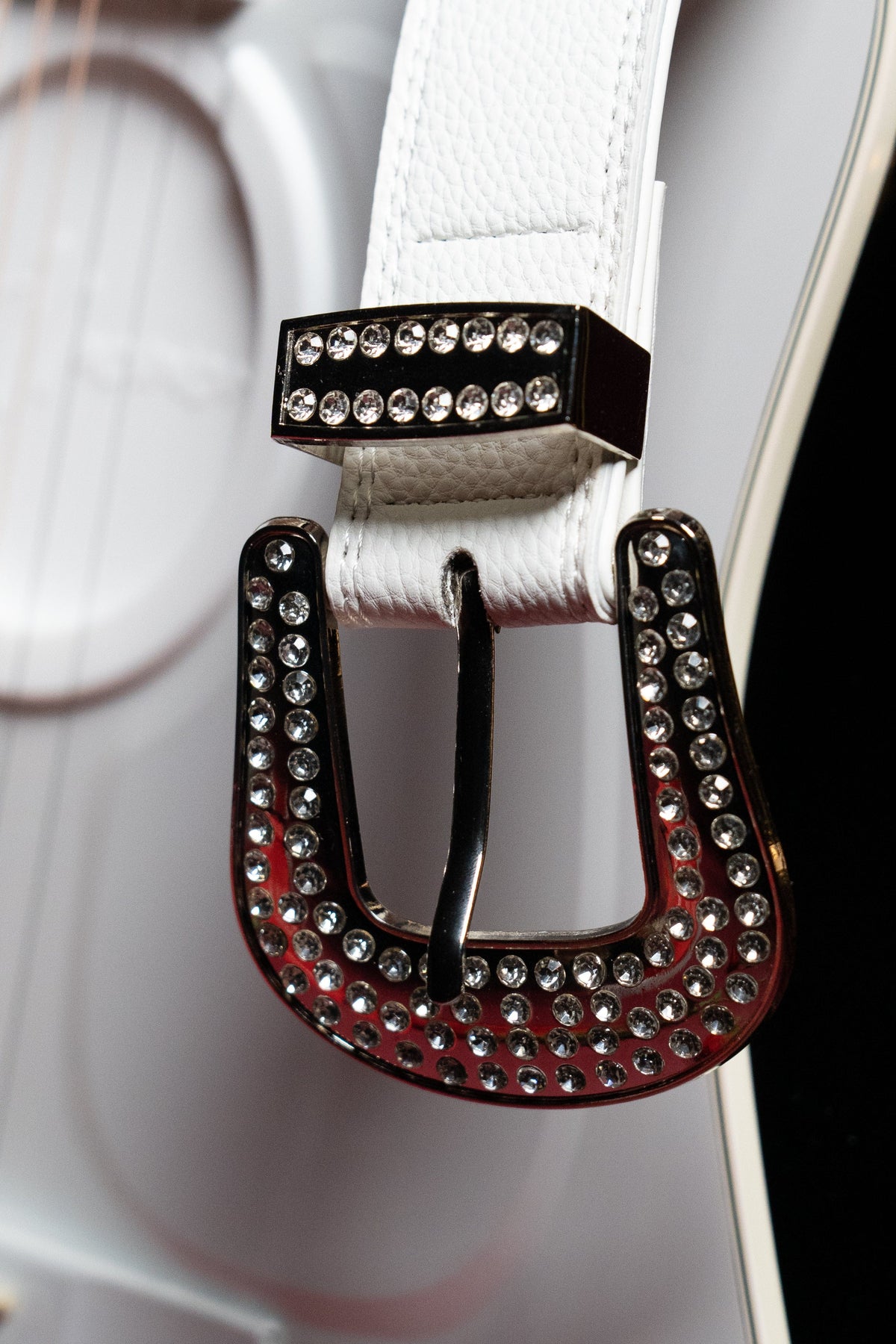 WHITE GOLD STUDDED GUITAR STRAP