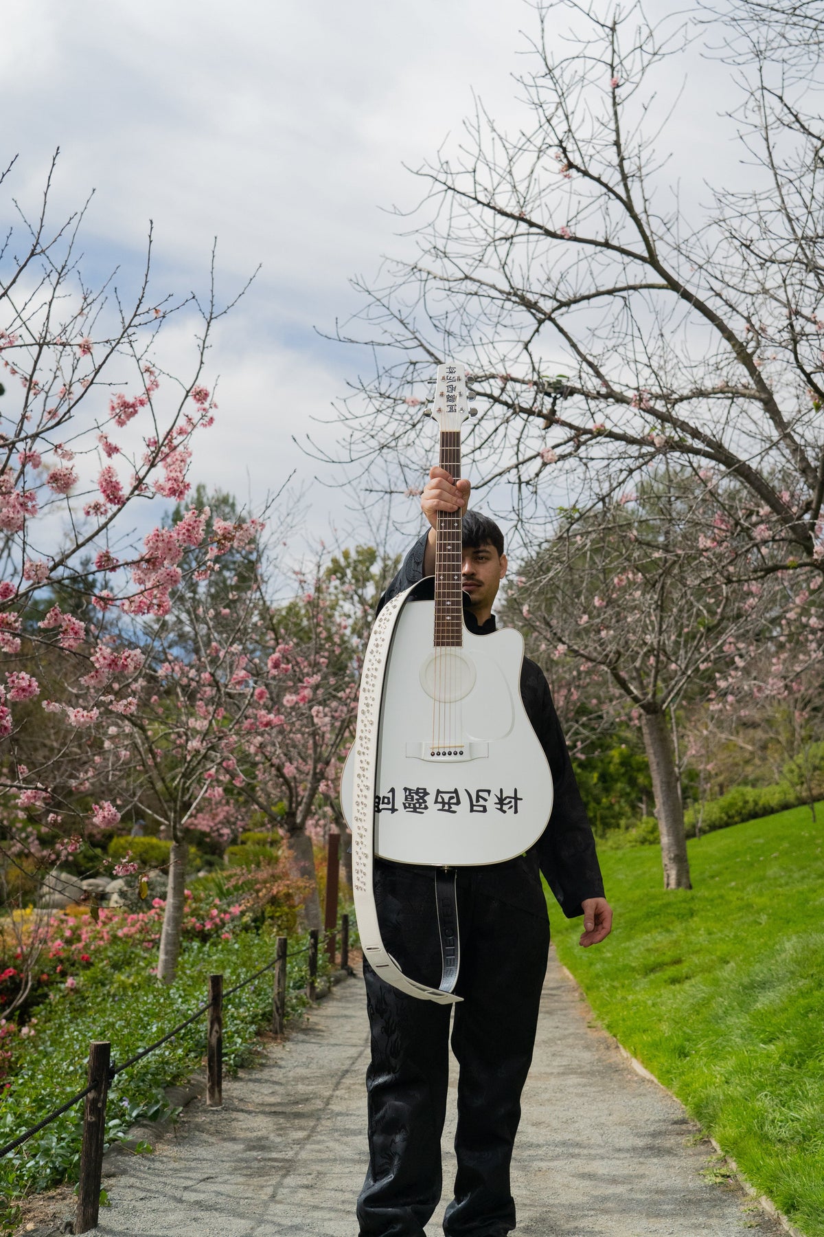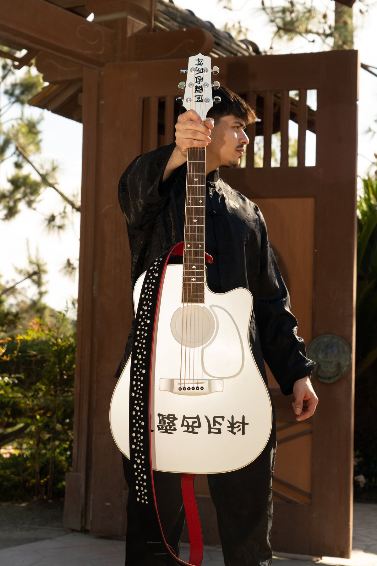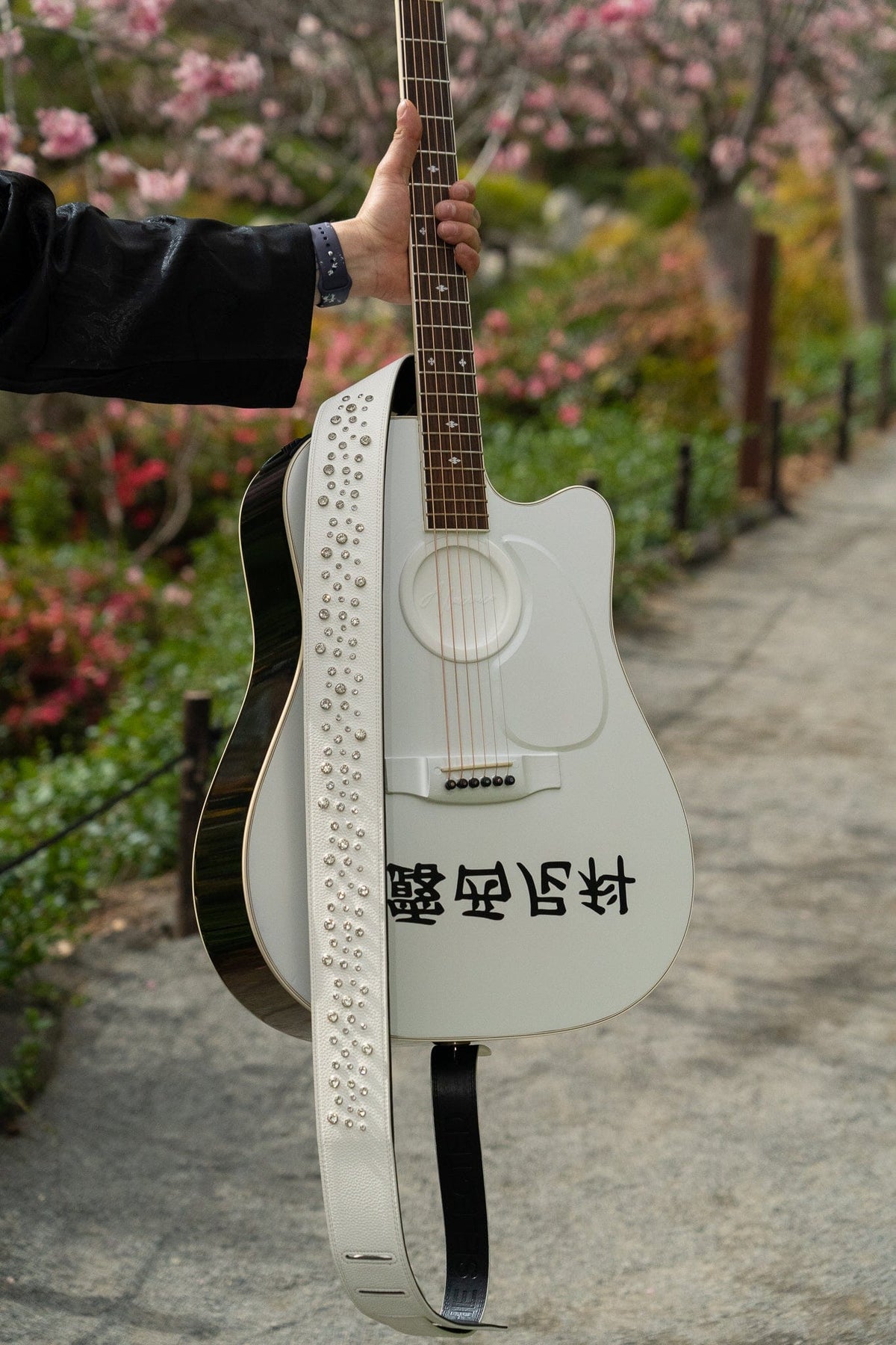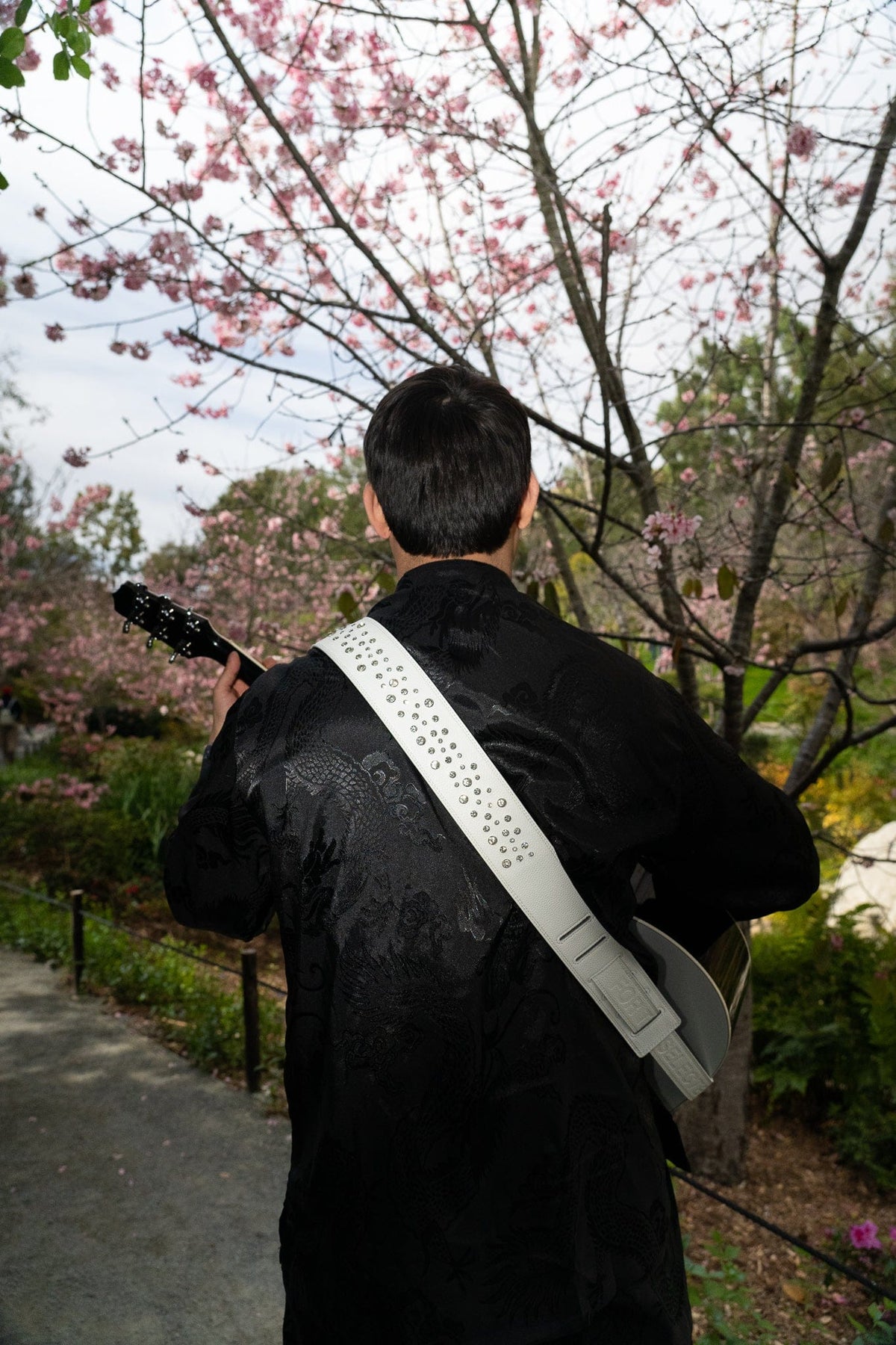 WHITE GOLD STUDDED GUITAR STRAP