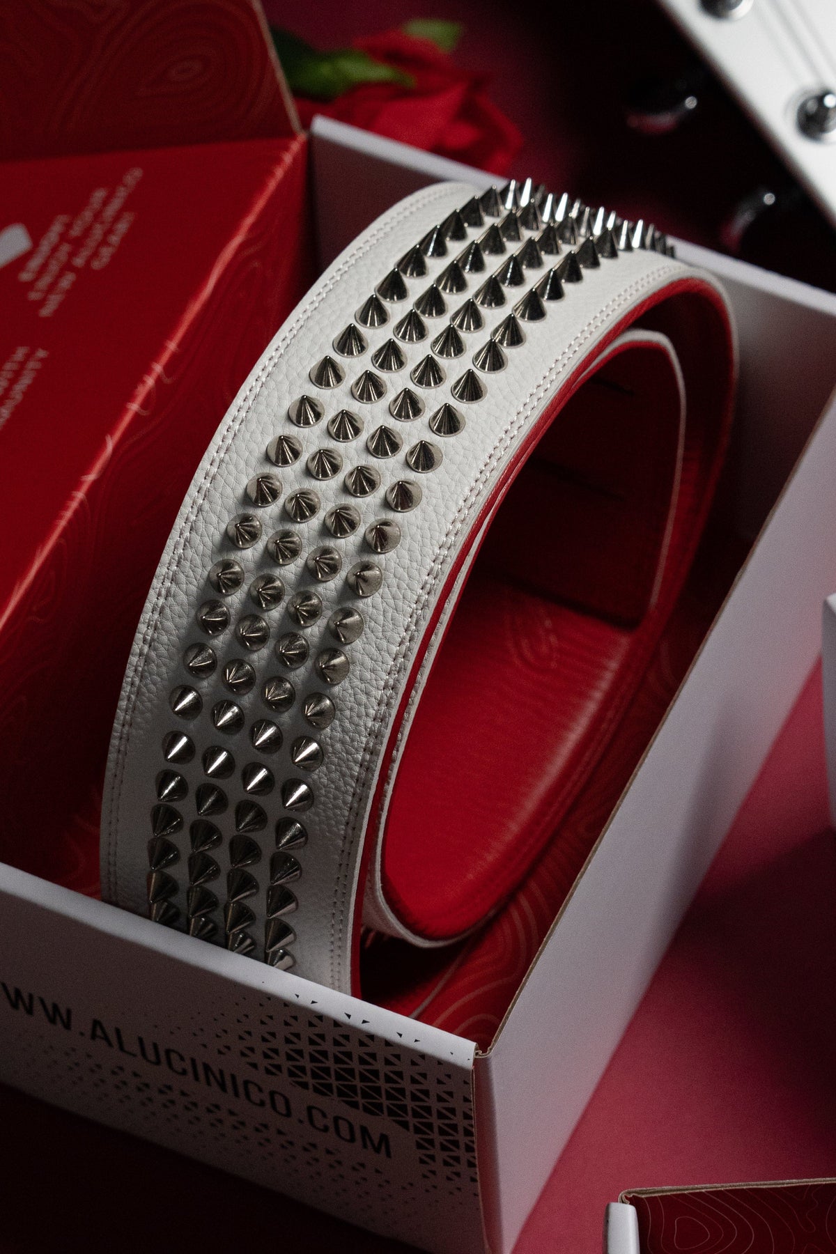 WHITE CHROME STUDDED GUITAR STRAP