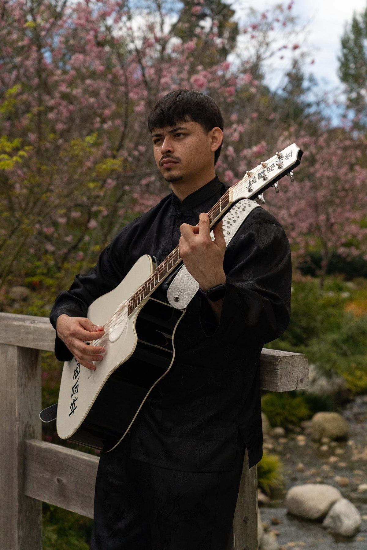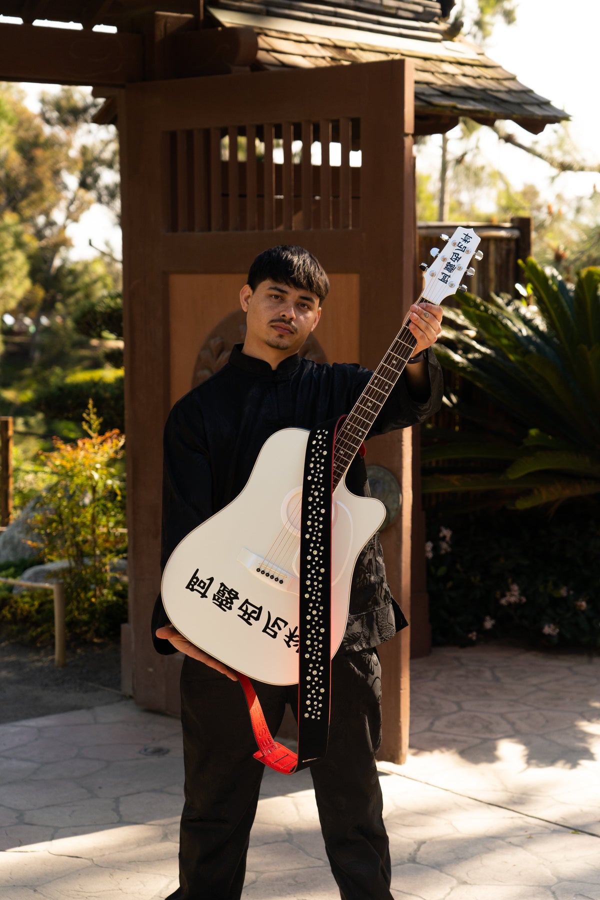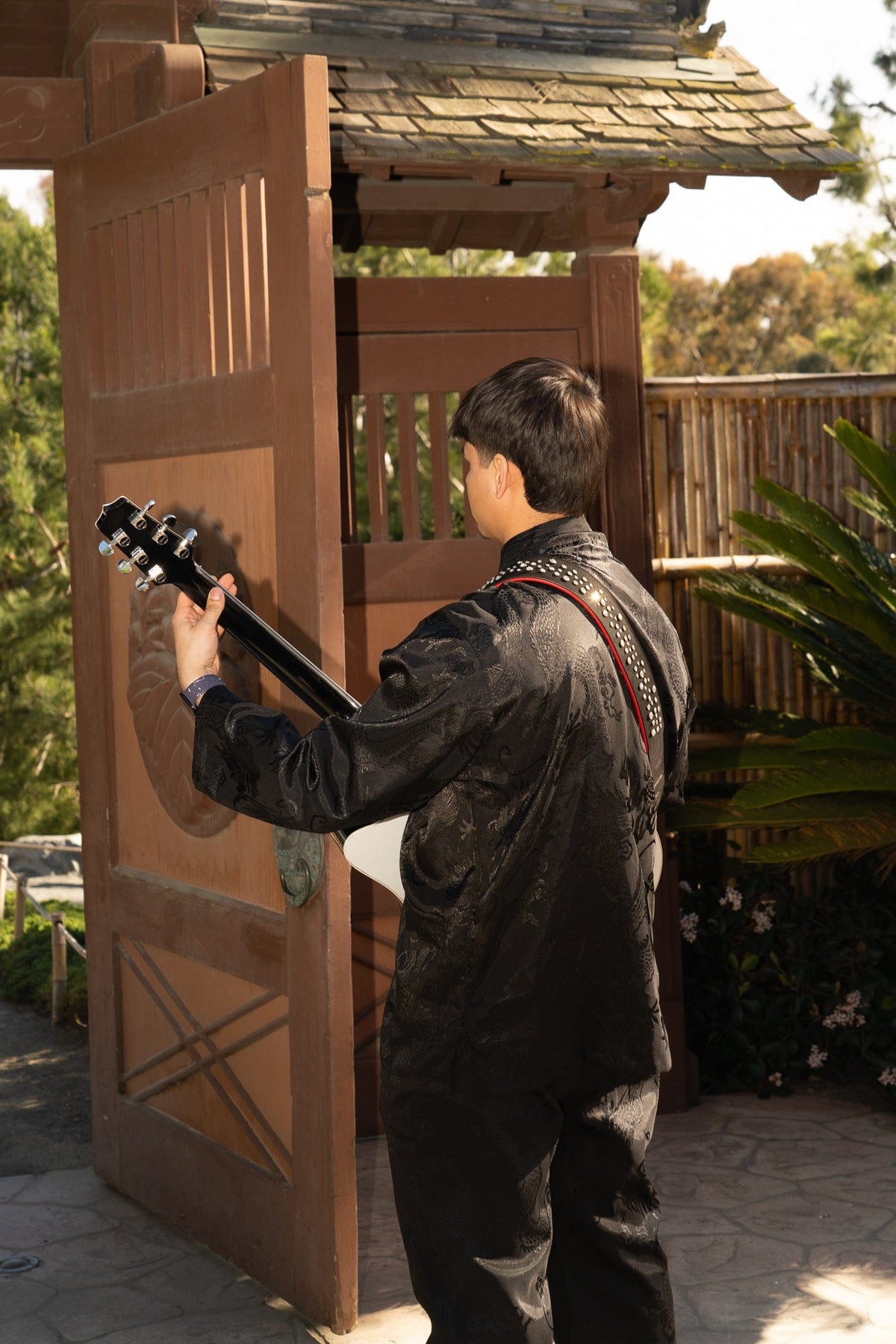 BLACK GOLD STUDDED GUITAR STRAP